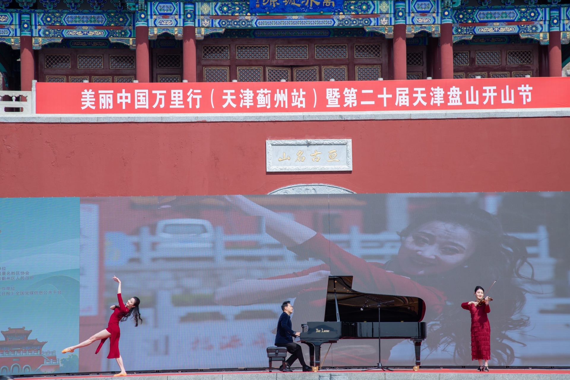 盤山,這座被譽為“京東第一山”的靈秀之地,層巒疊嶂,怪石嶙峋,仿佛大自然精心雕琢的藝術(shù)杰作。舞臺上,德洛伊鋼琴的黑白琴鍵在藝術(shù)家指尖下輕盈跳躍,時而激昂如盤山飛瀑,時而婉轉(zhuǎn)似山間清風。阿其瑪?shù)男√崆俾曂褶D(zhuǎn)悠揚,似山間鳥鳴,又如清風拂面。二者珠聯(lián)璧合,與王金玉的曼妙舞姿相得益彰,與盤山的壯麗風光交相輝映,將祖國山河的磅礴與柔情展現(xiàn)得淋漓盡致。